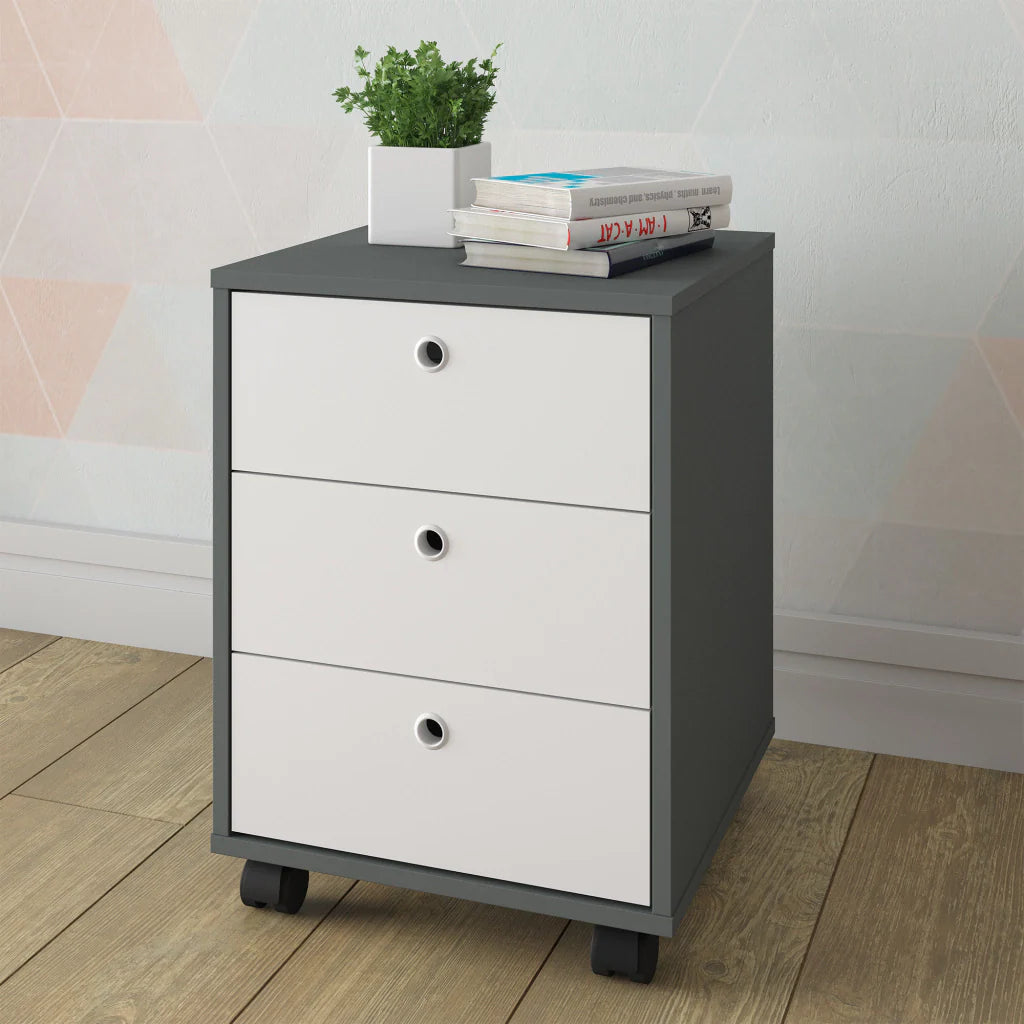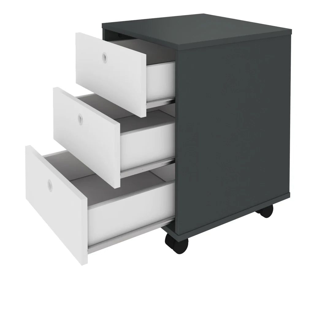 Gaveteiro 03 Gavetas com Rodinhas - Grafite e Branco