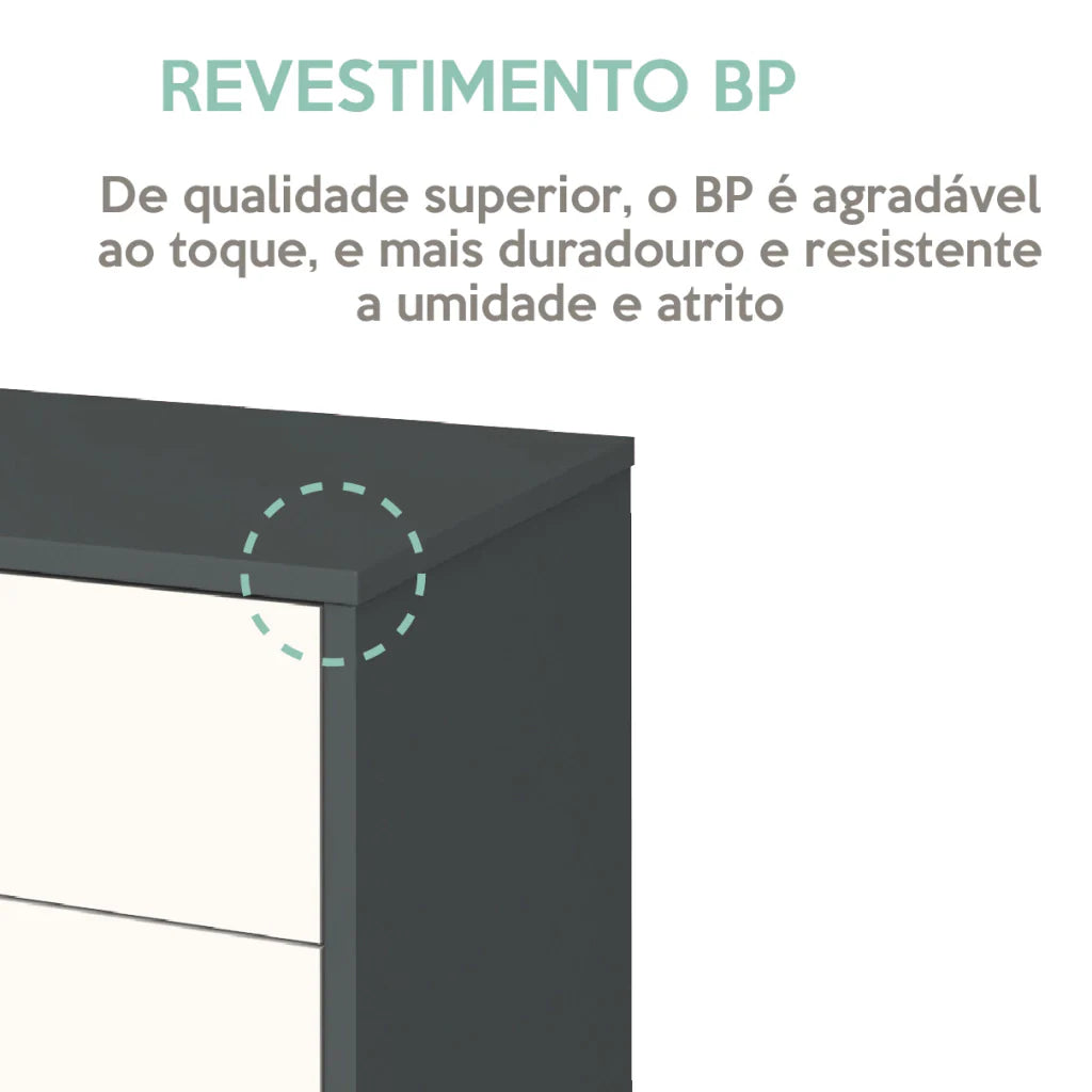 • Mobilidade: Rodízios reforçados que permitem movimentar o móvel com facilidade.